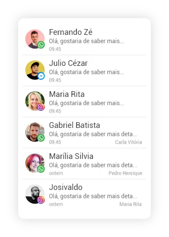 Receba e atenda todos os seus leads de vários canais diferentes, tudo em uma única tela, crie oportunidades, adicione tags, faça agendamentos, entre outras funcionalidades.